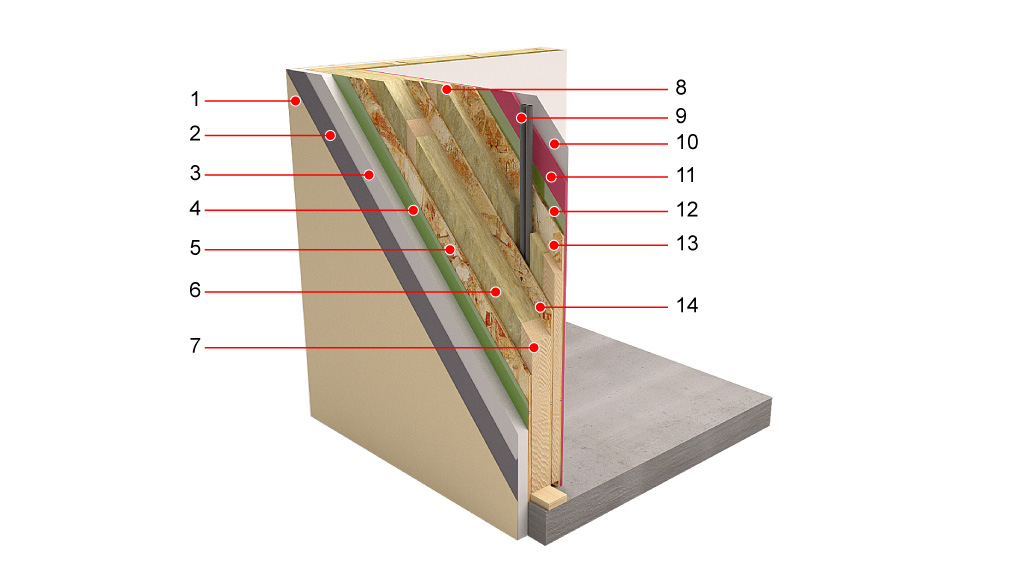 Sull’esterno dei pannelli parete viene applicato in opera il rivestimento di facciata (sistema a cappotto, facciata ventilata), mentre il lato interno fornisce il supporto per la posa delle canalizzazioni impiantistiche mediante la realizzazione di un apposito vano tecnico. Tale vano tecnico può, all’occorrenza, essere riempito con materiale isolante per accrescere le prestazioni termiche ed acustiche dell’intero involucro.